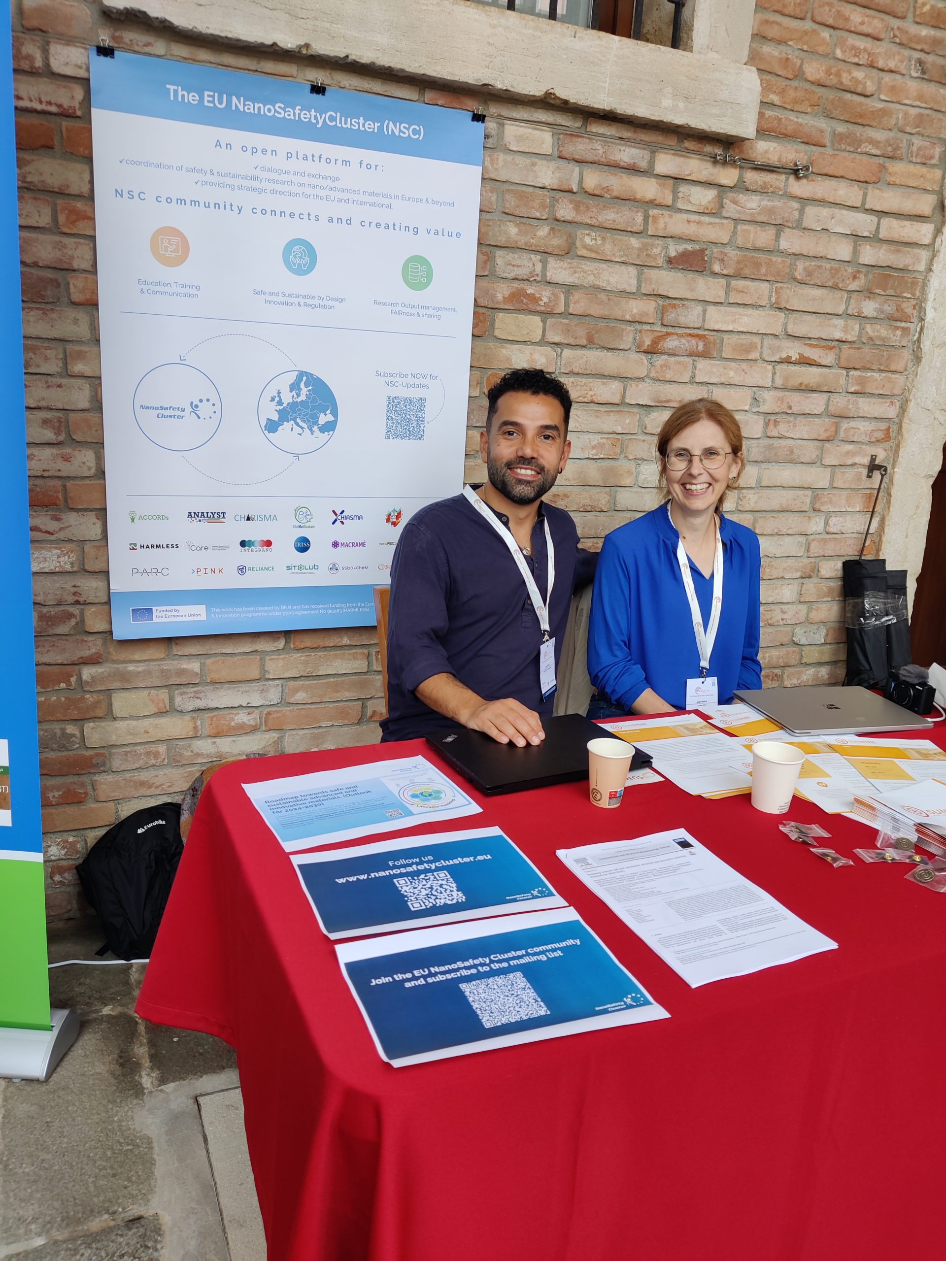 The NSC supported the organisation of the conference and took an active role on-site. Monique Groenewald in her role as part of the NSC Coordination Team, Danail Hristozov in his role as Chair of the Working Group on “Safe and Sustainable by Design (SSbD), Innovation & Regulation”, Martin Himly and Judith Friesl in their roles as Co-Chairs of the Working Group “Education, Training & Communication”, as well as Thomas Exner in his role as Co-Chair of the Working Group “Research Output management, FAIRness & sharing” promoted the role of the cluster as well as the collaboration opportunities for the projects.