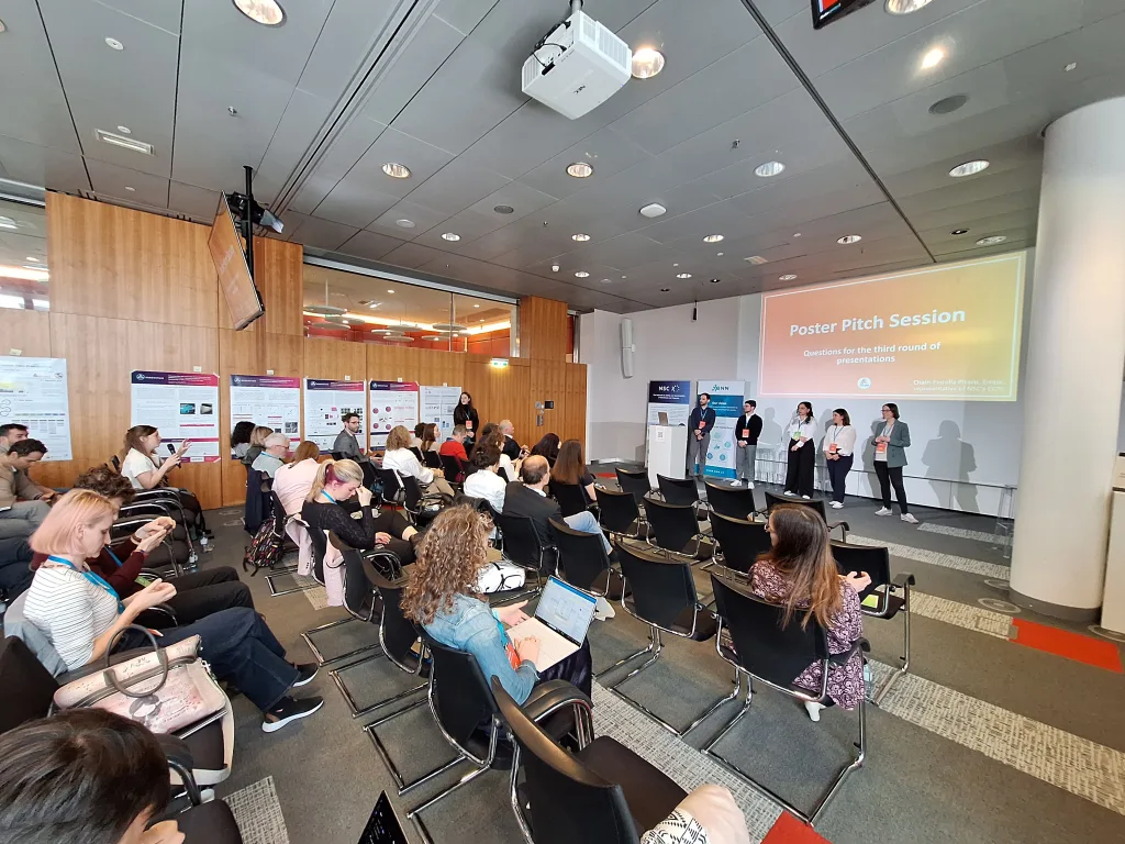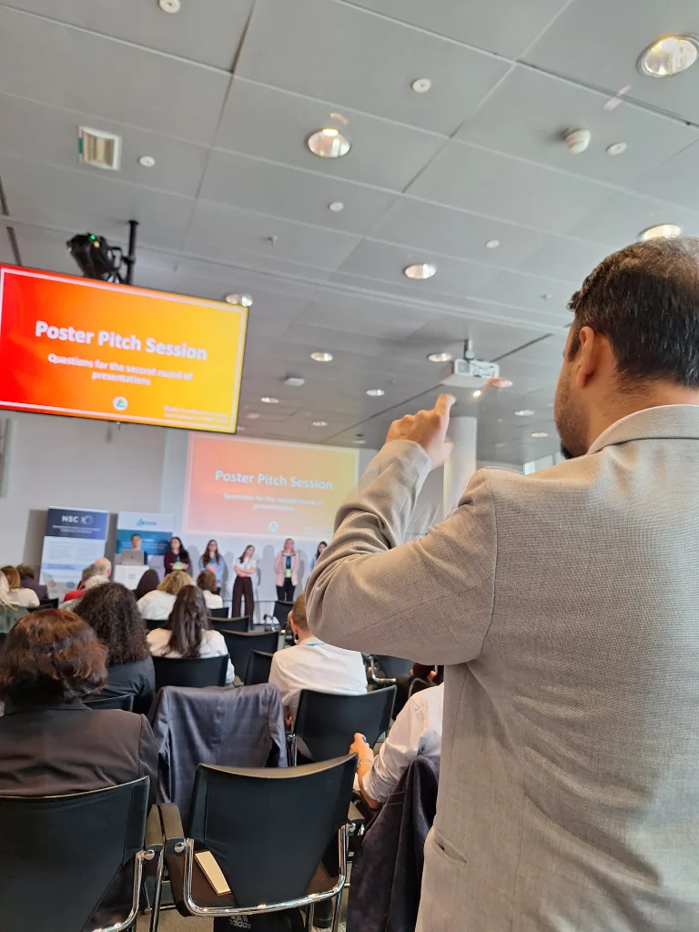 In total, the Poster Pitch Session featured 20 poster pitches, each lasting three minutes. Given the length of the session, the presentations were grouped into sets of six to seven pitches, followed by short periods for audience questions. This structure allowed for a more interactive exchange and enabled participants to address immediate questions from the audience.