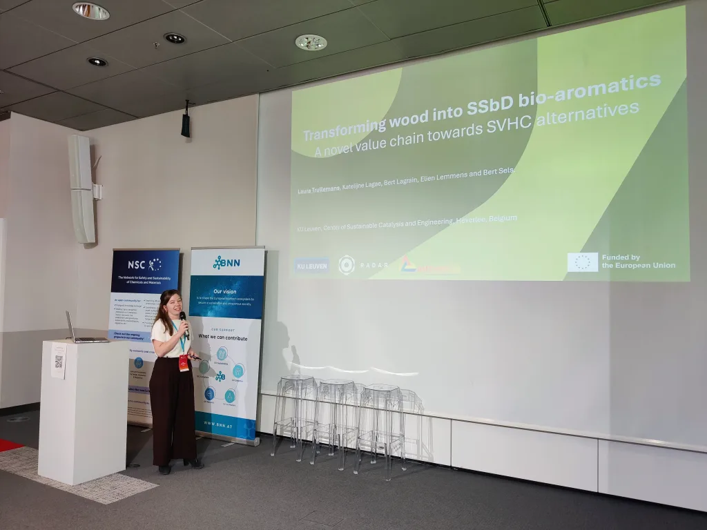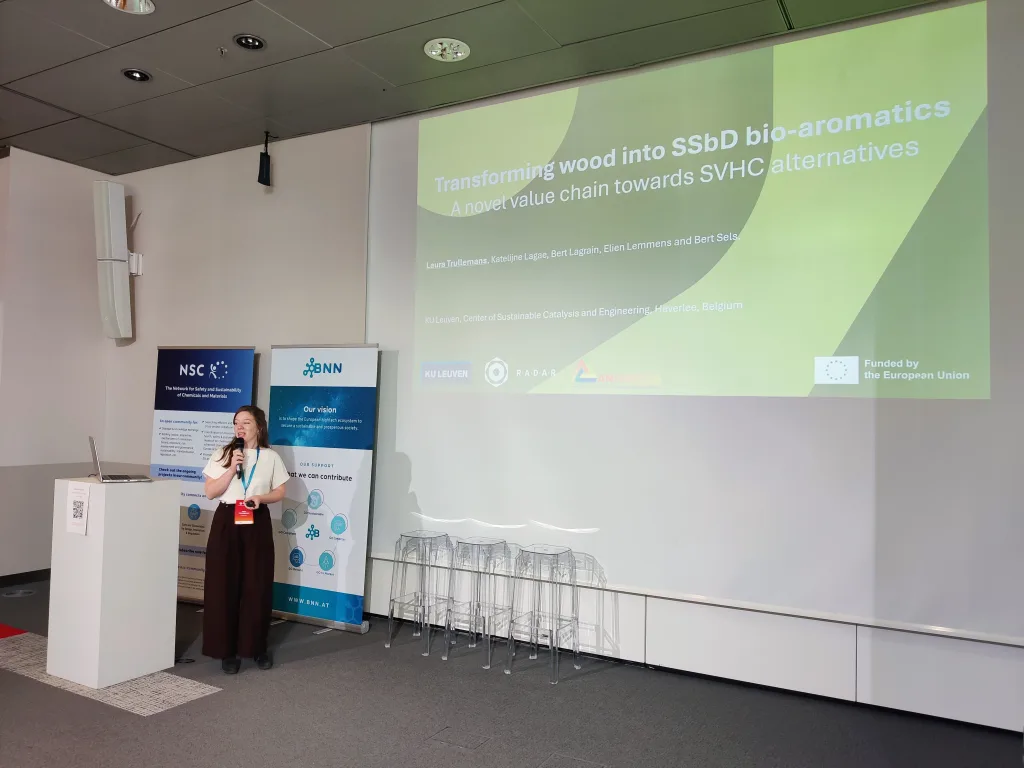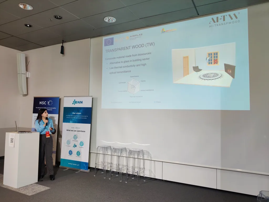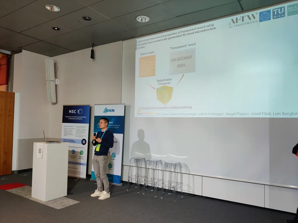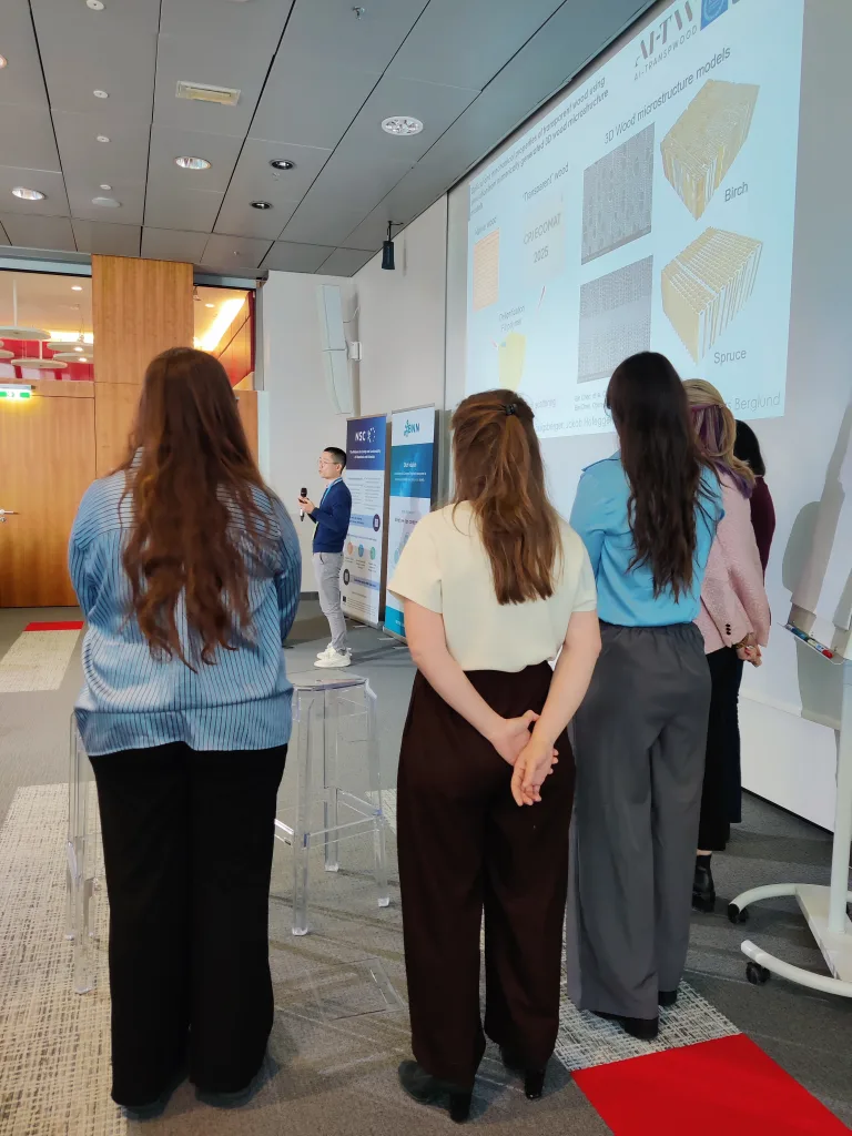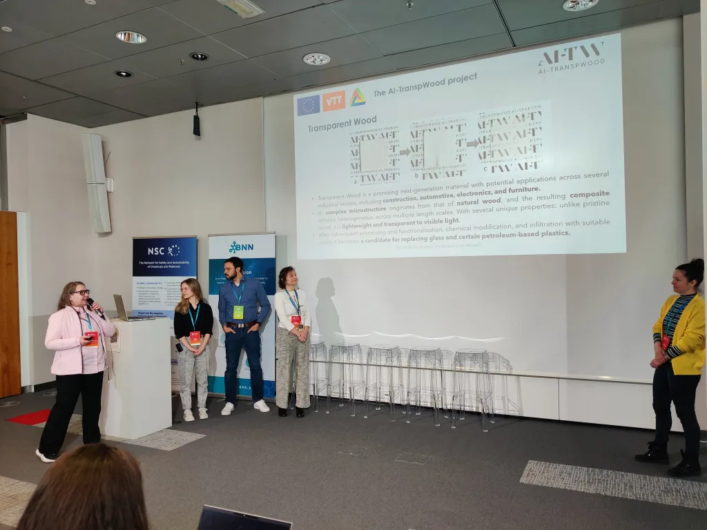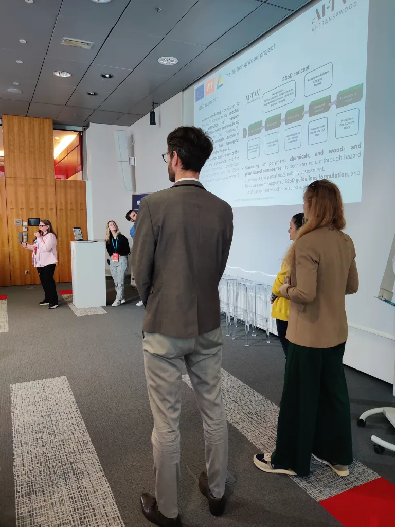 Several pitches focused on the technical aspects of their research. These included the development of nanoparticle-based biosensing platforms for rapid and sensitive detection of disease biomarkers; approaches for fabricating transparent wood using sustainable chemicals and polymerization methods, combined with simulation models to evaluate optical and mechanical properties; the development of new value chains for safe and sustainable bio-aromatics from wood within the RADAR project; and the creation of functionalized additives based on lignins and tannins in the BIOSAFIRE project.